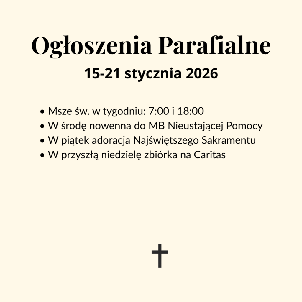 Ogłoszenia parafilane - aktualne Stałe miejsce publikacji aktualnych ogłoszeń parafialnych. Do wyboru kilka wariantów kolorystycznych oraz formaty do internetu i druku. Aktualne ogłoszenia parafialne (bieżący tydzień) Pobież ogłoszenia parafialne Pobierz - do druku A4